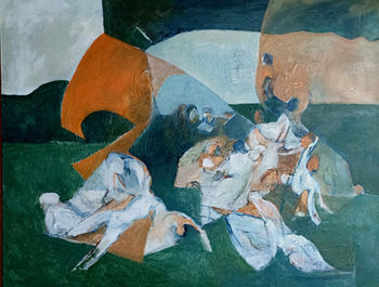 Ses peintures sont joyeuses et un peu décalées. Voir aussi sa collection de cartes, en papiers collés et/ou récupérés, mais aussi ses photos numériques.